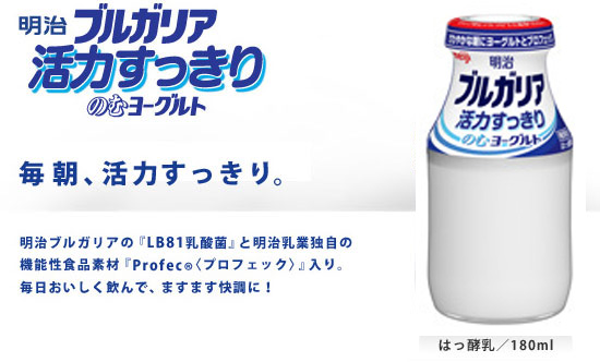 ヨーグルトの本場ブルガリアの大自然と伝統に育まれた乳酸菌入りで、甘さ控えめ、後味スッキリに仕上げたヨーグルトドリンクです。
